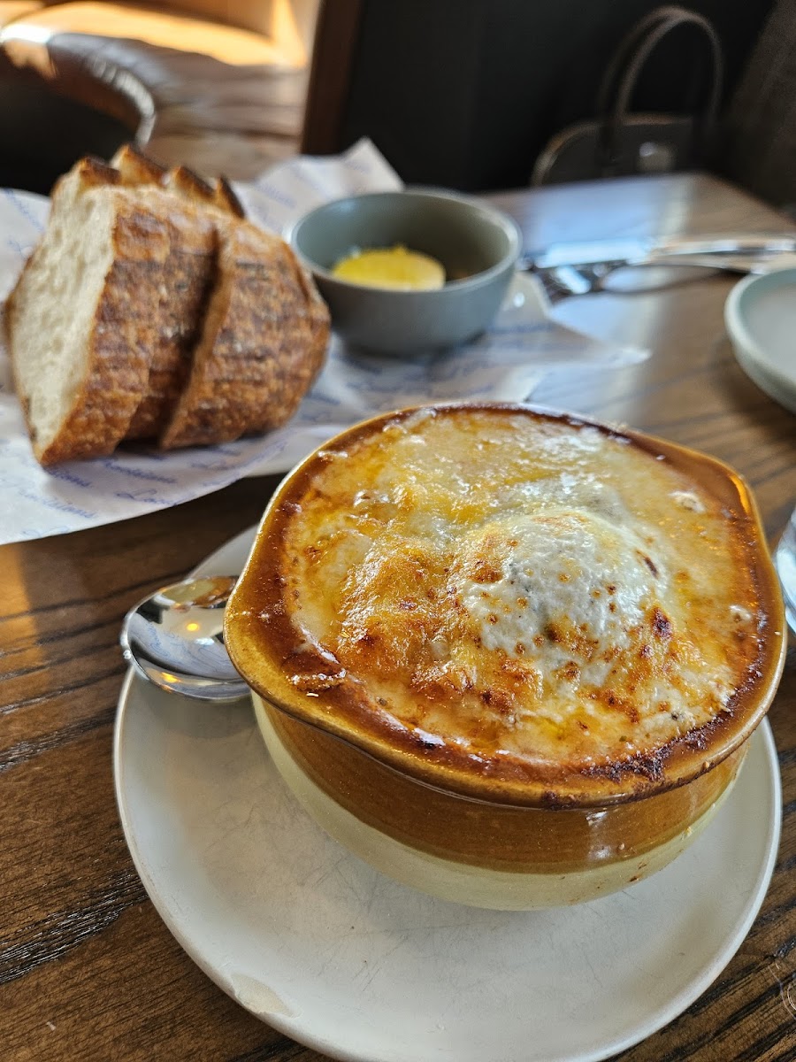Overall delicious and a very nice restaurant. Inside is well done, but it was a little too dark at our table to read the menus - they did turn the lights up a little at some point. Solid cocktail options and well-curated beer/wine selection. Bread ($6) is good but would be better if they warmed it (first basket should maybe come to the table after someone orders an entree). Beets and goat cheese salad is one of the best we’ve ever had. A must-order. Mussels were nice and tender (but lukewarm) and the frites are excellent (especially after dipping them in the mustard sauce). Beef bourguignon was tasty, but sauce was too thin to stick to the pasta. Crème brûlée and cappuccino terrific. Our server was friendly and attentive and had a great attitude. Lots of options on the menu. We’ll go back soon.