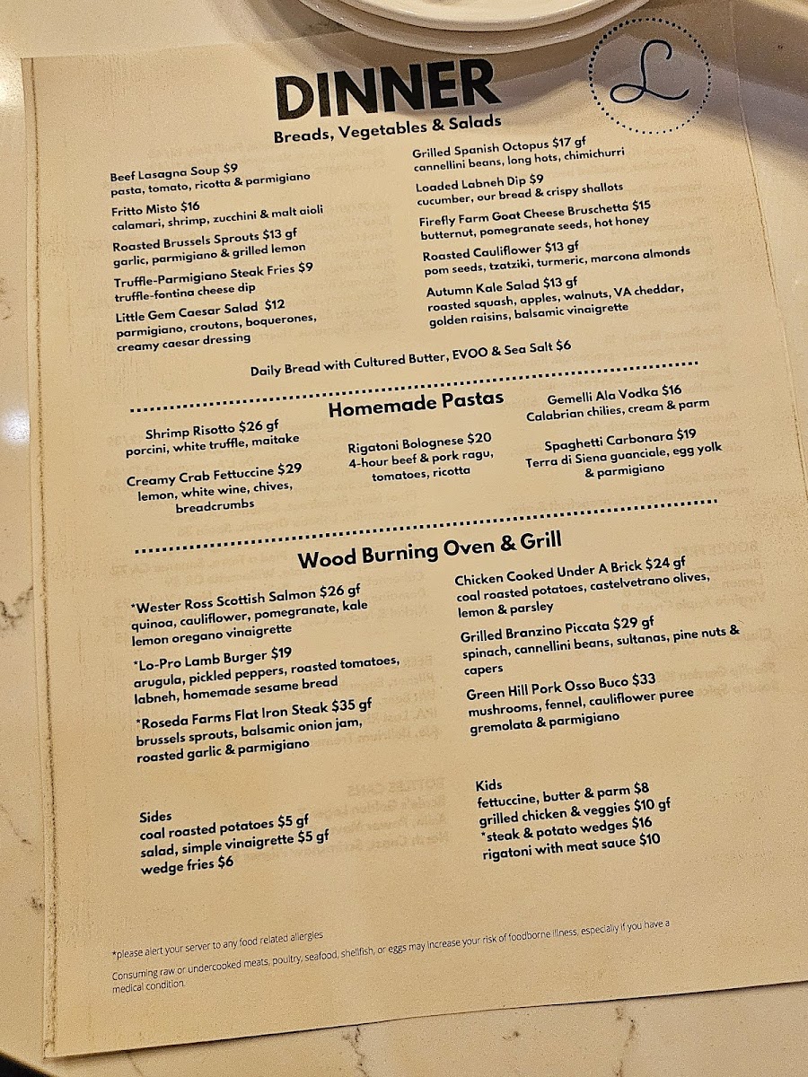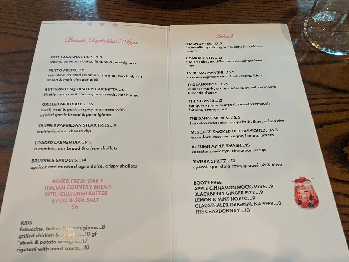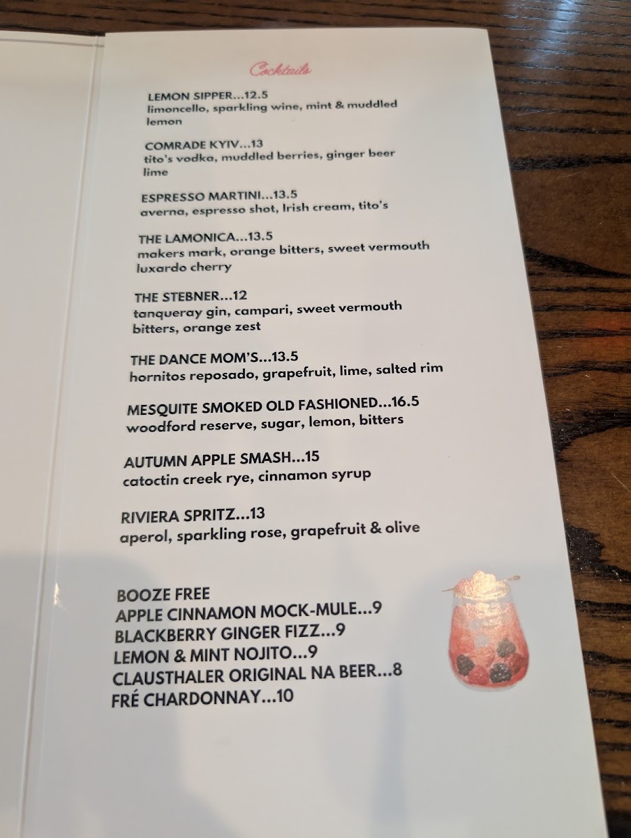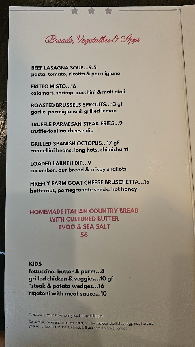 Alongside main dishes, the menu features satisfying small plates like the Firefly Farms Goat Cheese Bruschetta and indulgent sides such as Truffle Steak Fries, providing options for light bites or complements. The bar offers a variety of cocktails and refreshing drinks—like the Blackberry Ginger Fizz—that provide a gentle lift without overwhelming the relaxed pace of the meal.