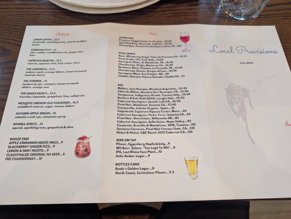 Local Provisions offers a menu that balances approachable, comforting dishes with thoughtfully crafted drinks, inviting guests to enjoy a relaxed dining experience. The selection leans toward hearty pastas, fresh seafood, and shareable plates that suit both casual lunches and unhurried dinners. For example, the Rigatoni Bolognese with ricotta cheese showcases a rich, slow-cooked ragu that pairs well with the warm, inviting atmosphere.